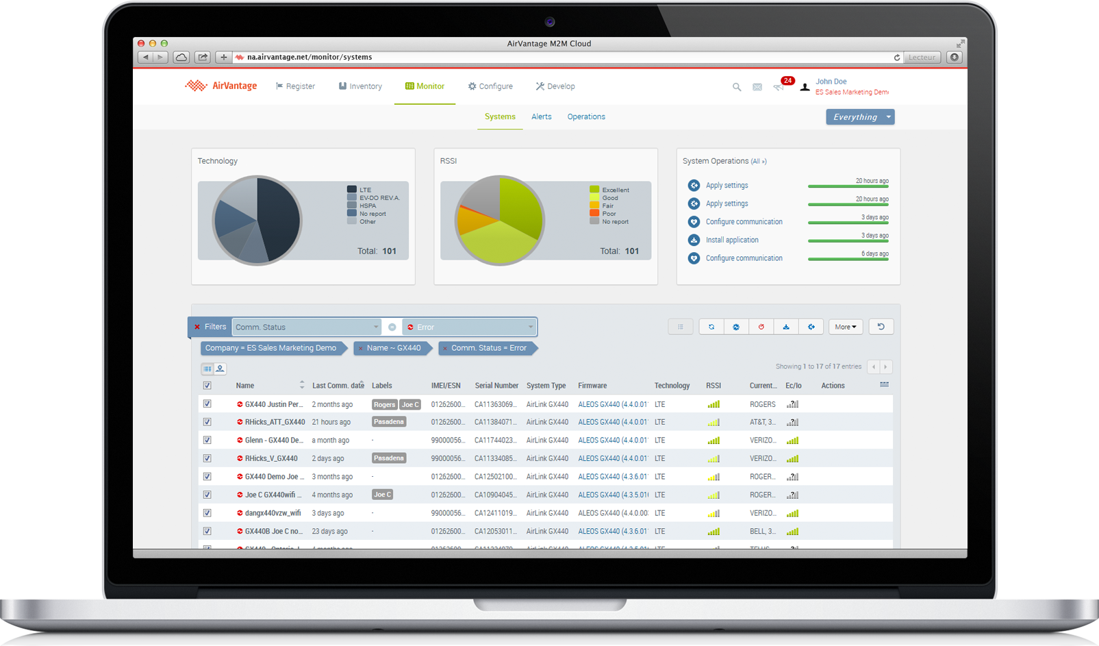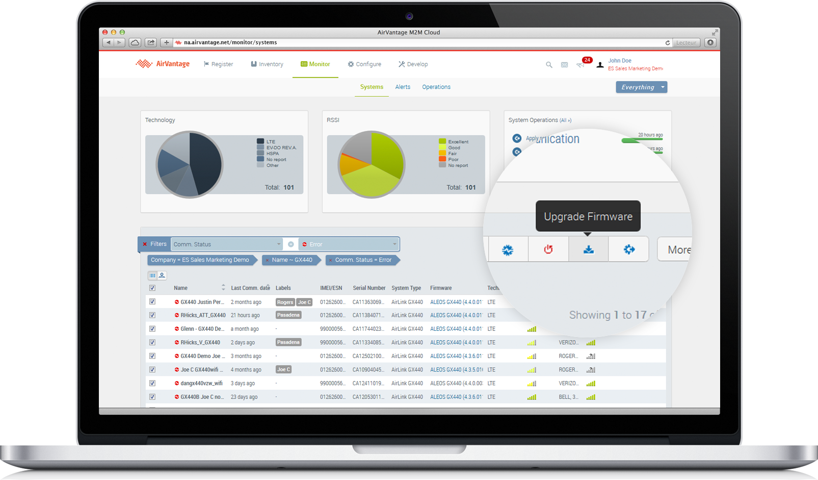 AirLink Management Services customers can Monitor their AirLink gateways over-the-air.