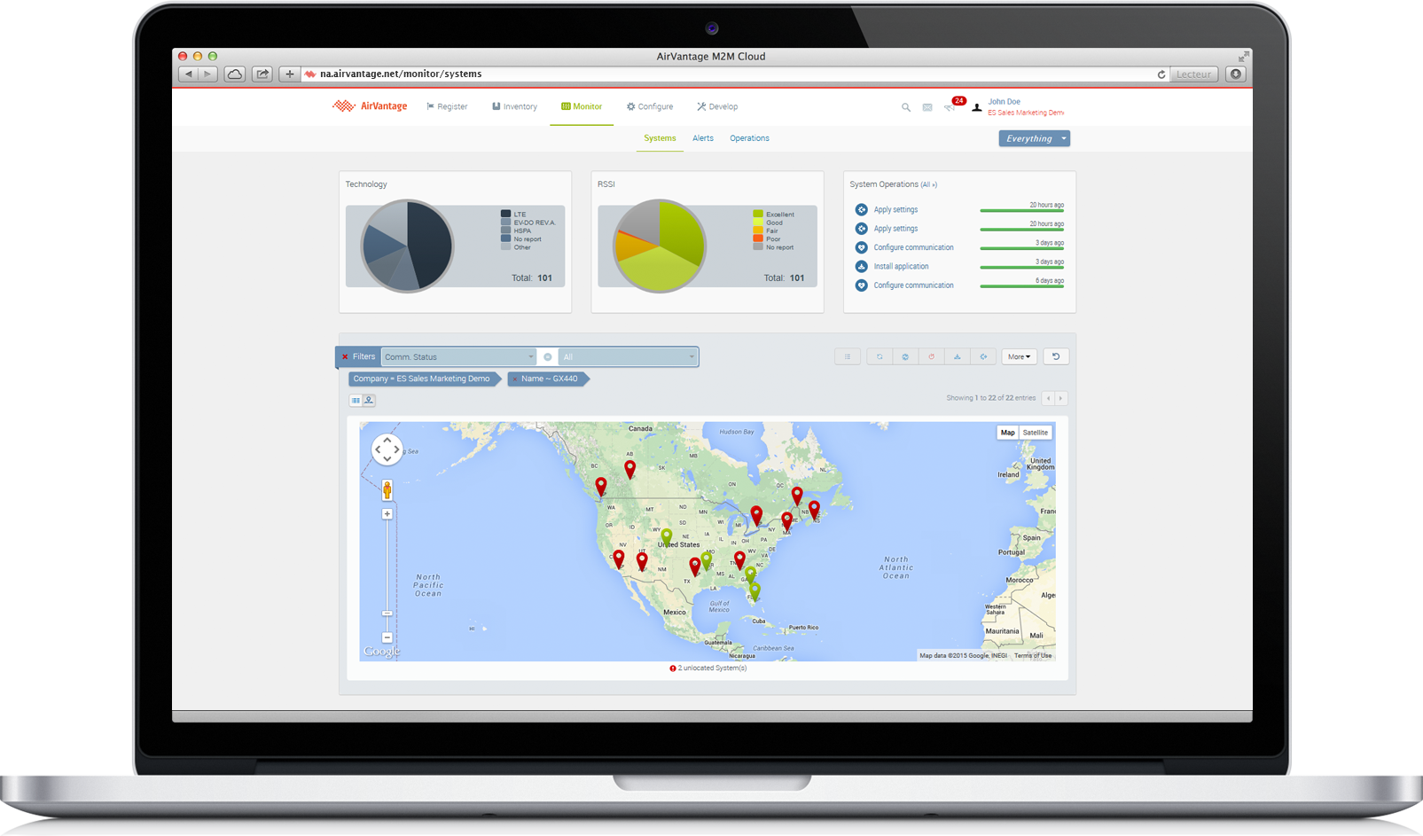 AirLink Management Service is an application built on AirVantage. AirVantage can take data collected from AirLink gateways and bring innovation to business processes, service applications, and revenue streams.