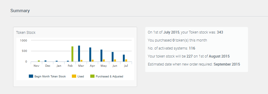 This is a summary account statement, with details of your company’s token stock and consumption.