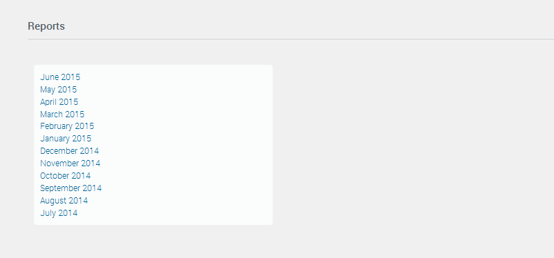 The Reports section shows the monthly token reports that have been sent to your company Admin contact(s). Links to reports for the last 12 months are shown. Each new month, the previous month’s report is added to the list and is accessible online.