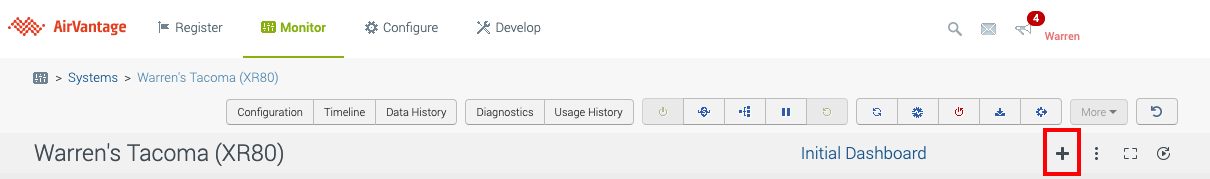 Click the + button to create a new Dashboard or edit an existing Dashboard: