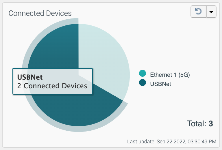 A pie chart will appear in the list displaying the number of devices attached to each LAN interface on the device:
