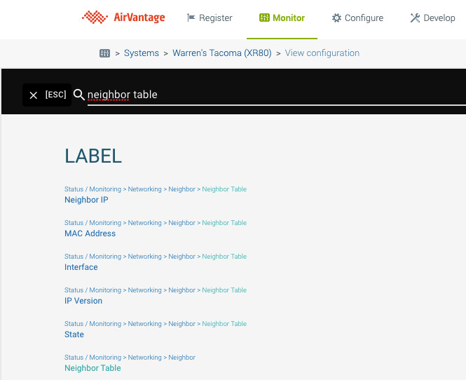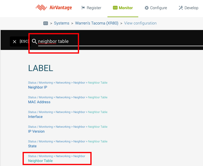 Click the search bar, search for neighbor table, and click Neighbor Table in the list: