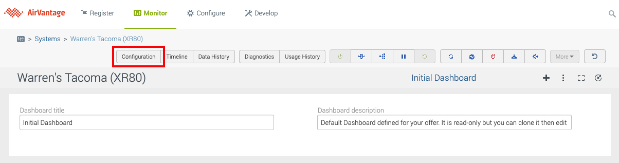 Before you can view this information in AirVantage, you must first enable the Fast changing reporting rule functionality through AirVantage: