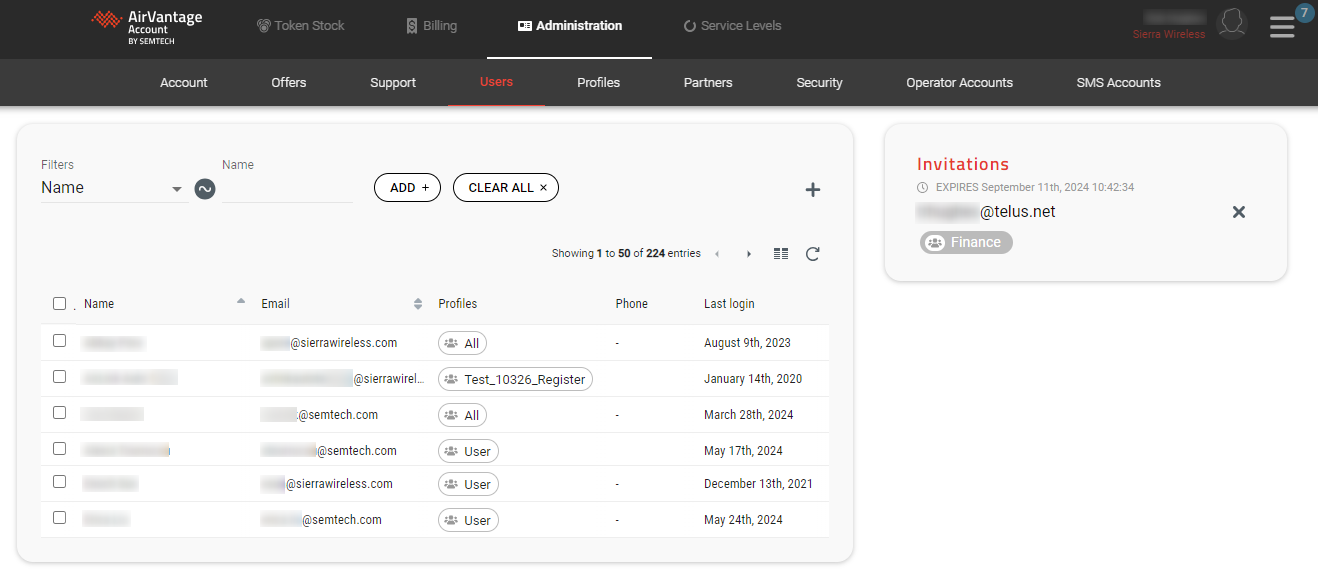 Recommendation: Sierra Wireless recommends that all customers maintain at least two users with Administrative privileges in the account at all times. This will allow customers to manage their account and make changes to user privileges and access rights as needed.