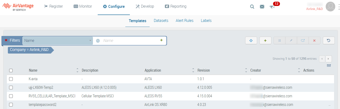 This template will be applied in the next device’s communication with AirVantage by writting all the settings included in this template.
