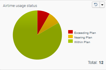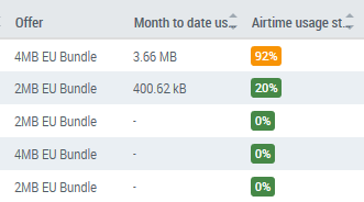 In addition to the grid, the AirTime Usage status widget tracks usage consumed against the bundle offer indicating with a color coded status: