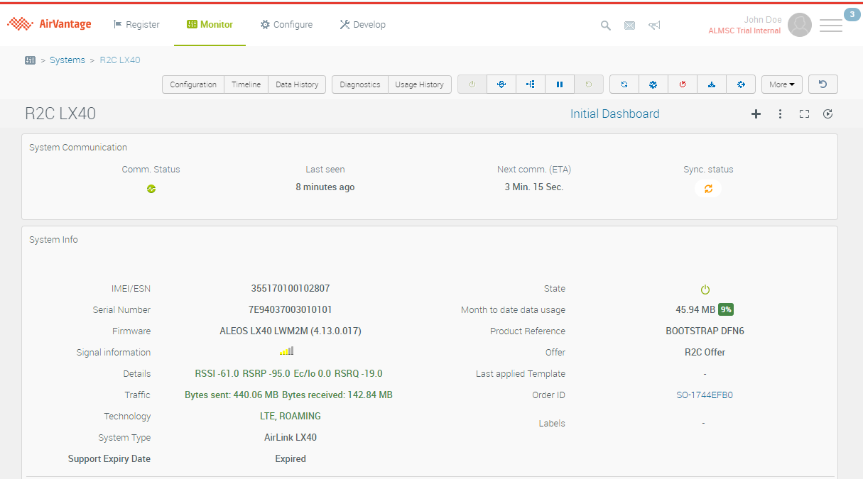 Monitor helps you manage your fleet of SIMS/systems deployed on the field. It provides access to all the systems of the company along with their status, communication history, usages, configuration and management. This page is also customizable to present the information that is most important to you.