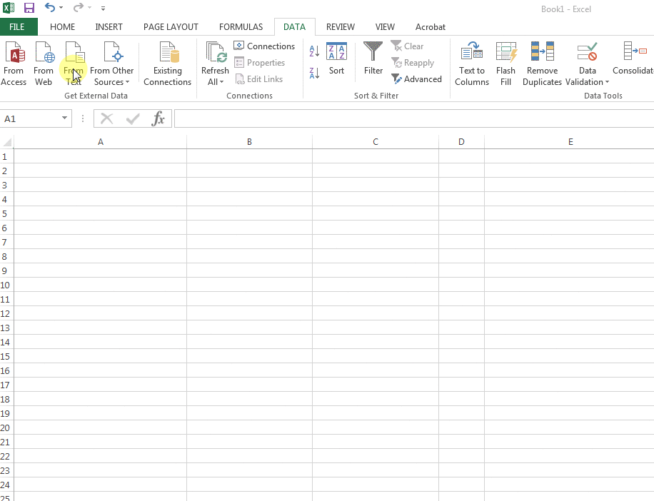 Now you can import it into Excel or a similar tool. For example, open a new workbook in Excel and select the File > From Text icon, which launches the Text file Import Wizard.