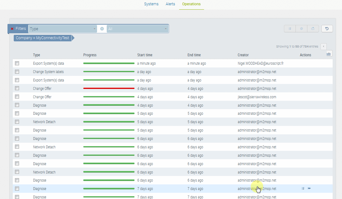 Once you launched activation on the offer of choice, you can follow the progress of the activation as any other operation in the Operation widget. If a large number of systems has been selected, this may operation take some time to complete (typically a few minutes per SIM).