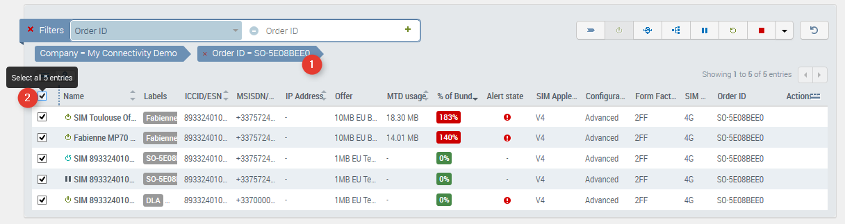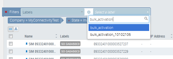 If you have a large number of SIMs to activate - hundreds or even thousands - you will find it useful to apply single or multiple filters to the list before selecting the SIMs to activate.