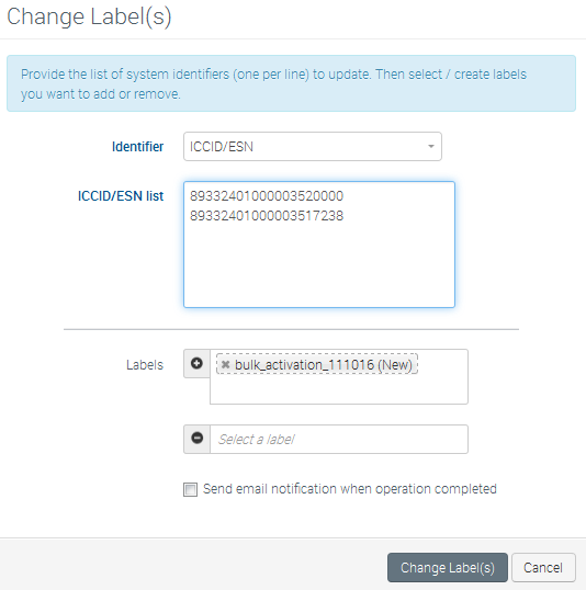 Once you have identified the list of SIMs you want to activate, in AirVantage, you can apply a label to those SIMs to further take action on this selection. Let’s take as an example, some SIMs that we have identified from a Sort operation in Excel.
