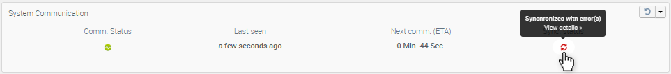 In addition to the Sync Status, there are other visual clues in ALMS about the currency of the data in the ALMS user interface. The System Info widget displays the various data points in different colors, to indicate how the data has been reported to ALMS, relative to the Heartbeat interval that has been set in the Configure Communication settings.