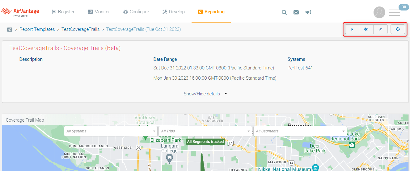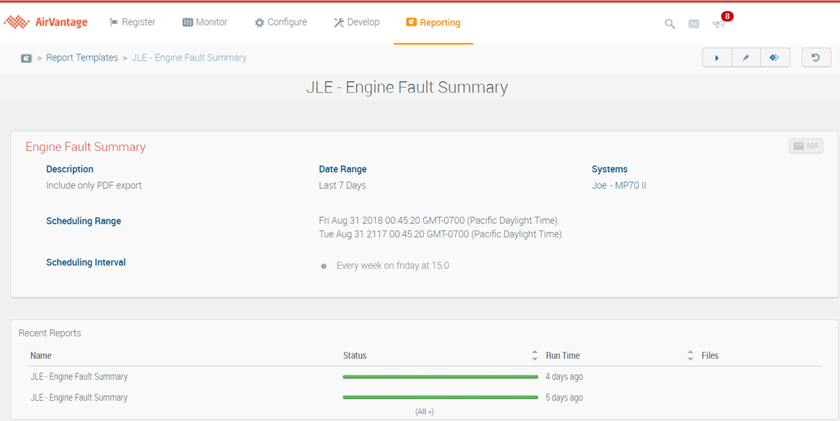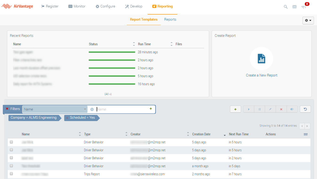 Please note that event datapoints are pre-processed in AirVantage on an hourly schedule before becoming available for AMR report purposes. Because of this, events occurring within the hour before the report execution time (scheduled or on-demand) may not be included in the report.