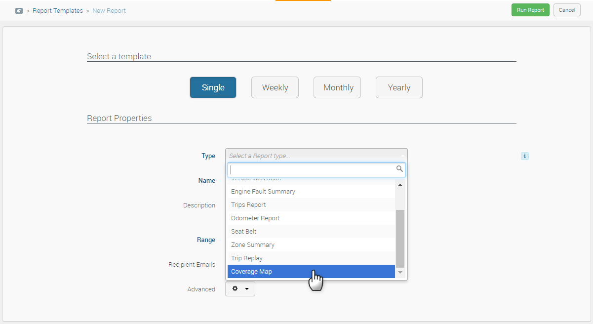 Give your report a brief, descriptive name. You may want to use a driver’s name, a vehicle model, and/or the AirLink gateway or router model, depending on the type of report you run.