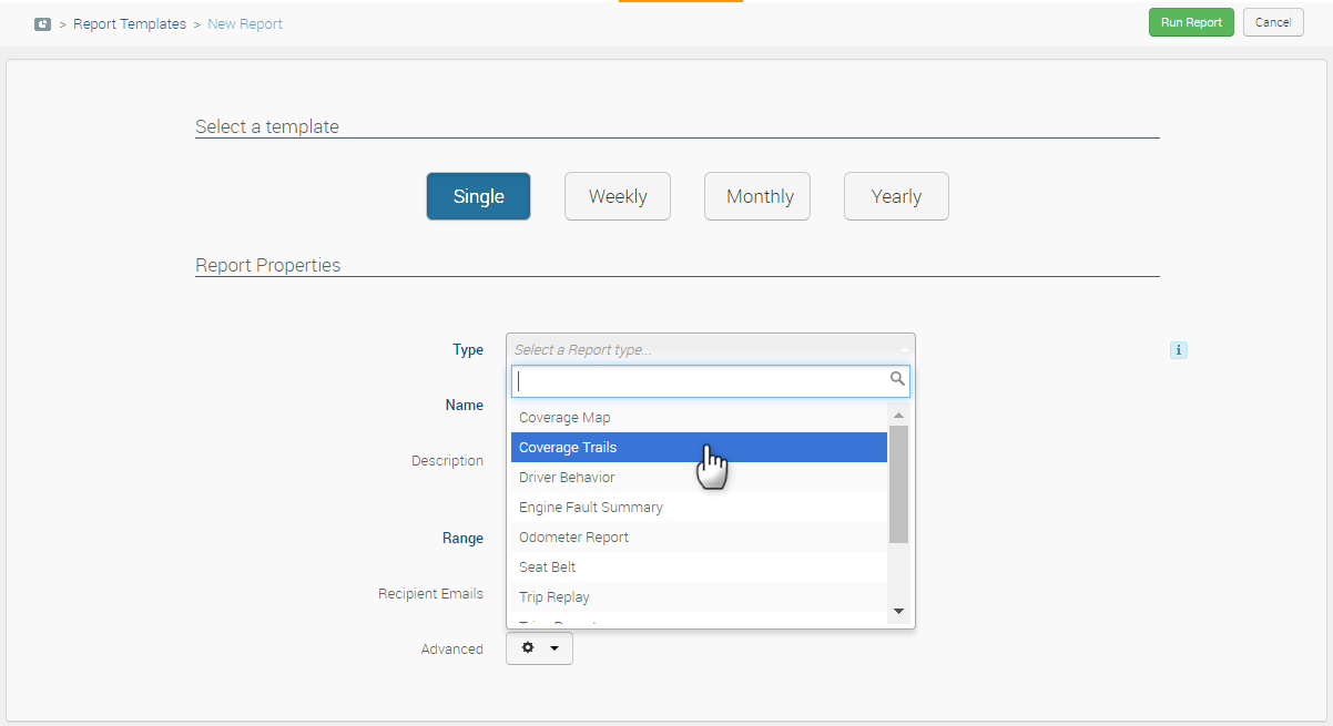 Give your report a brief, descriptive name. You may want to use a driver’s name, a vehicle model, and/or the AirLink router model, depending on the type of report you run.