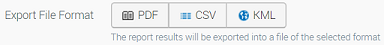 Reports can be exported as PDF, Excel (.csv) or KML files, depending on the type of report you are generating.