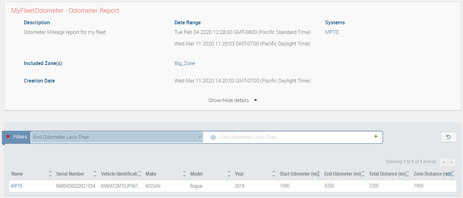 • Odometer data that is collected outside an “Include” zone is filtered out of the report results.