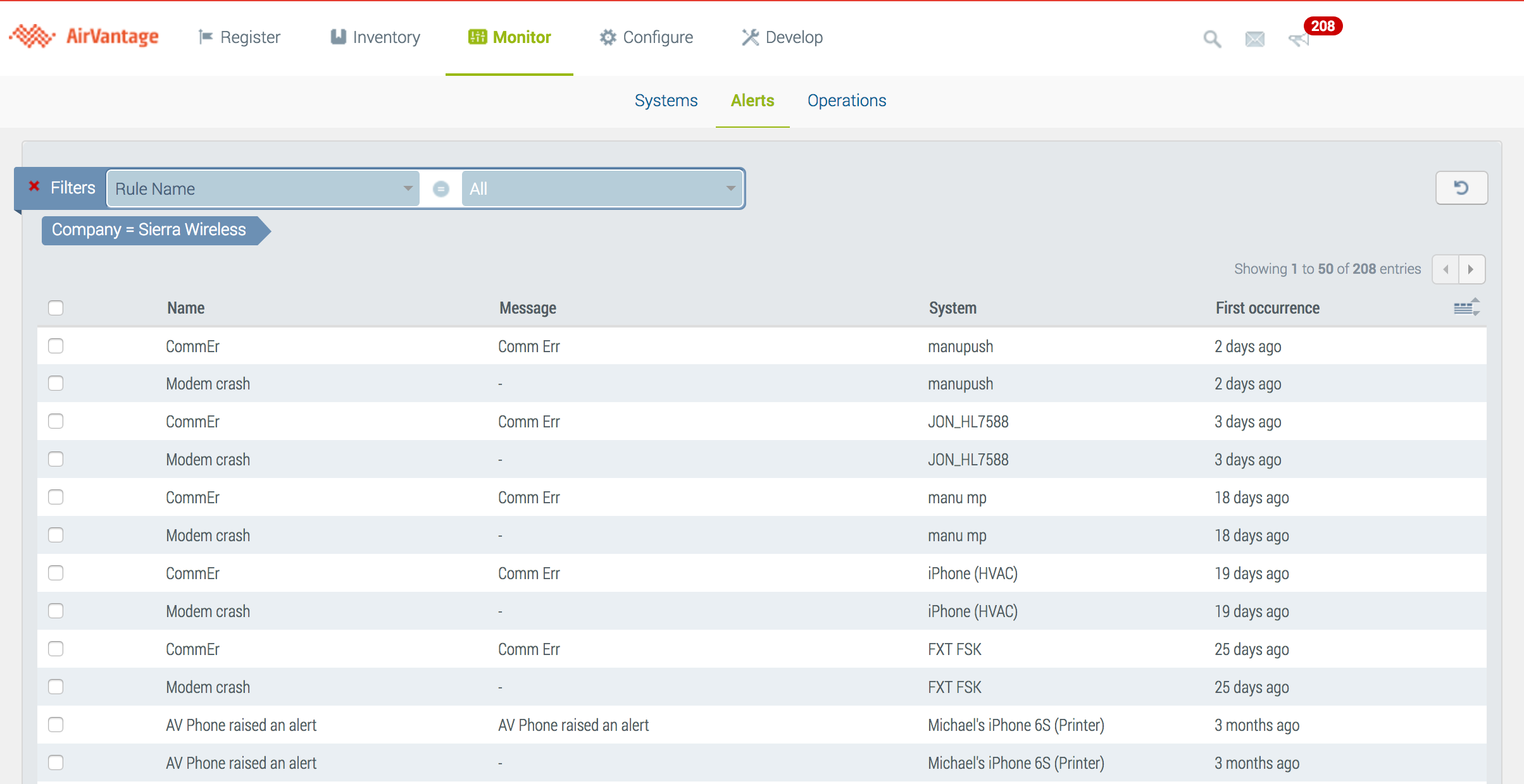 In the table in Monitor > Systems, the systems are identified in error if a problem has been detected by a rule as long as the problem is still raised.