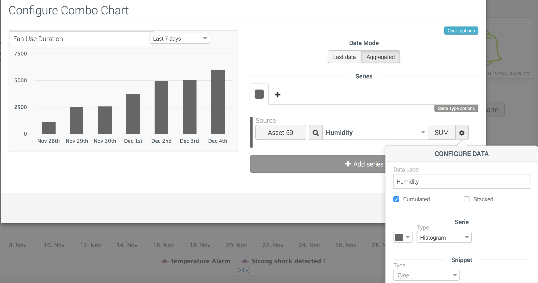 To exploit data from the fleet, organizations often define a custom dashboard in AirVantage, with visual widgets and alerts.