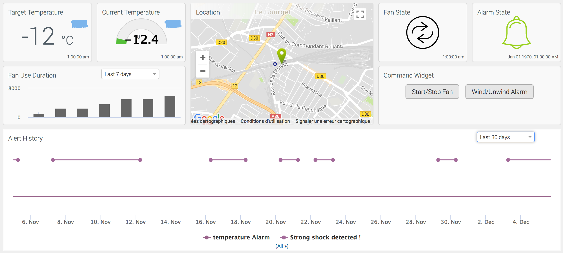 For a fleet of refrigerated trucks, containers must be monitored via AirVantage to ensure that temperature-sensitive perishable cargo (blood, chilled food…) remains within safety parameters: