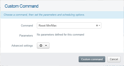 To send commands, you go to Monitor > Systems, select your system and go to its details page. Then you can click on the “More” button and select the “Custom command” action. It opens the following dialog. In this dialog, you can select one of the commands available on your system. When you click on “Create”, it initializes a “Custom command” operation (in progress state)