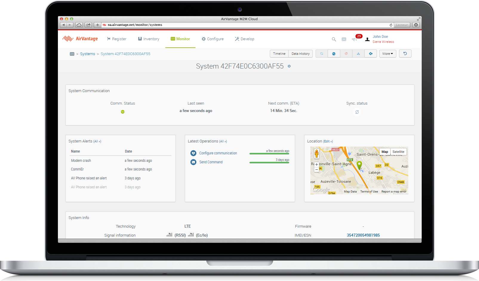 We assume you have already registered your system and you configured it to use your application. Now you want to troubleshoot the overall solution. The first step is to be sure your system is communicating well with AirVantage.