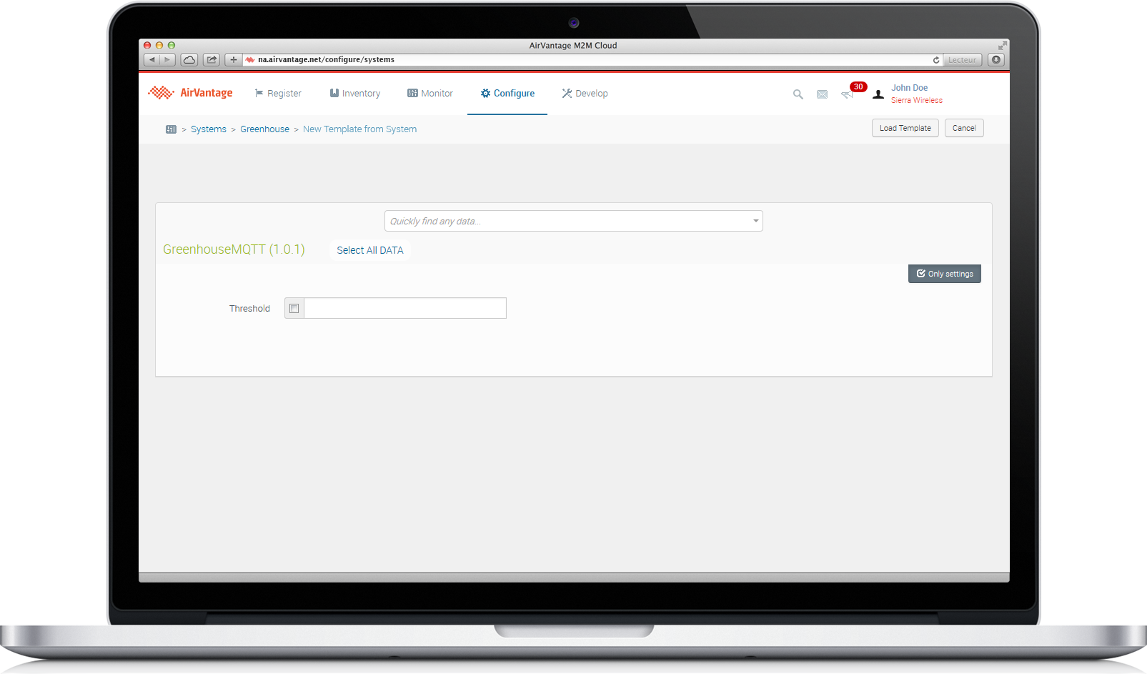 Once the communication between AirVantage and the device is working fine, you want to validate the behavior of your solution more comprehensively. You can interact with the device using “Apply settings” and “Send commands” operations (depending on the features supported by your embedded applications).
