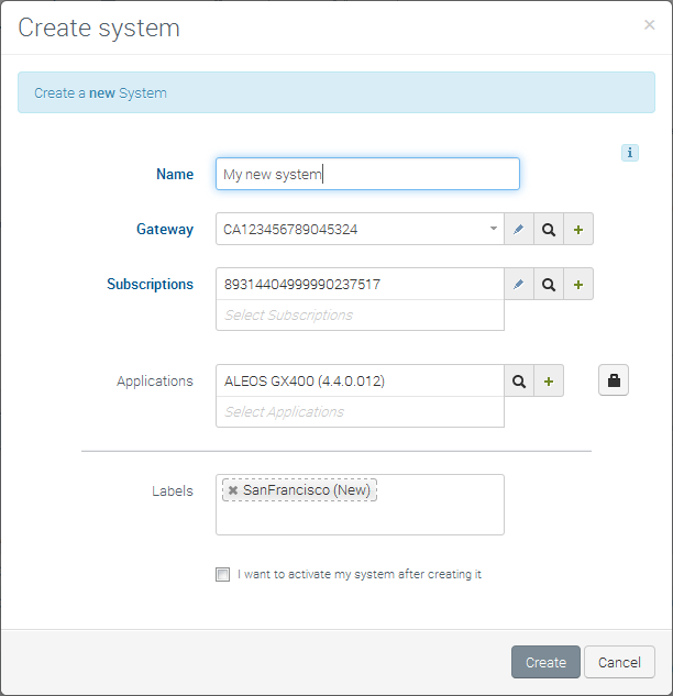 You are also given the option to activate your system directly after creation. If you choose the option to activate your system, it will be created in Ready state and you will be able to start monitoring it right away. Not choosing system activation will create the system in state Inventory and you will be able activate it at a later stage.