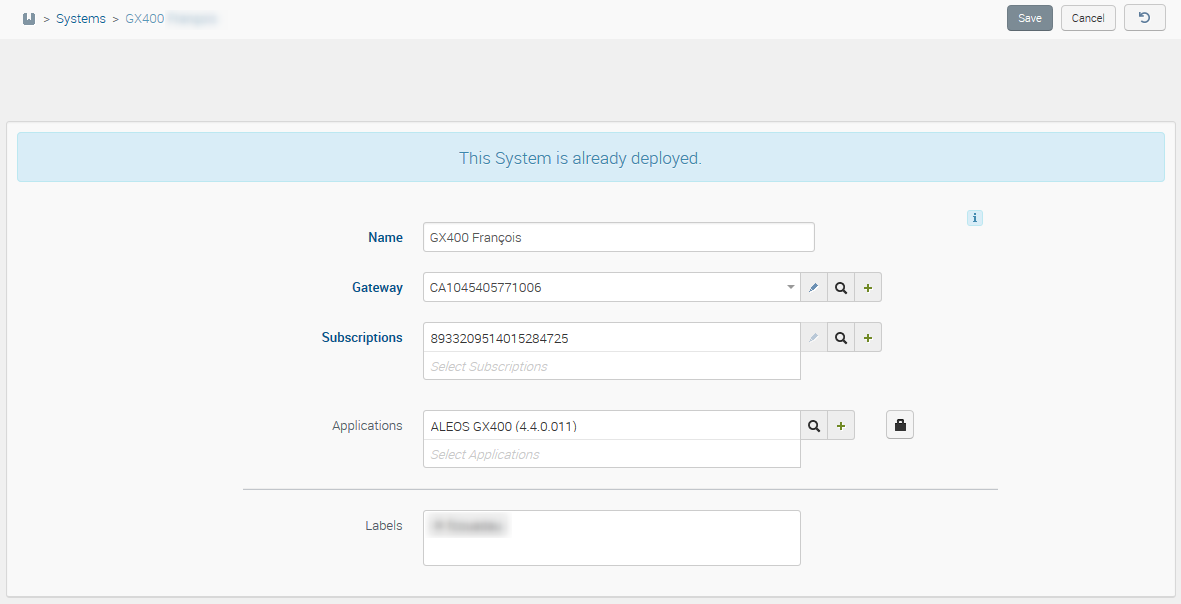 A system must be in Maintenance or Inventory state (not Deployed) to be edited – switch it to maintenance first if needed. Similarly, a gateway cannot be edited if it is associated with a system in Deployed state.