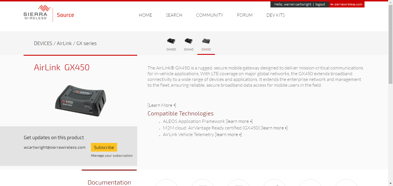 The Source is Sierra Wireless’ technical support website, and is a central repository for all product information, firmware releases and documentation.