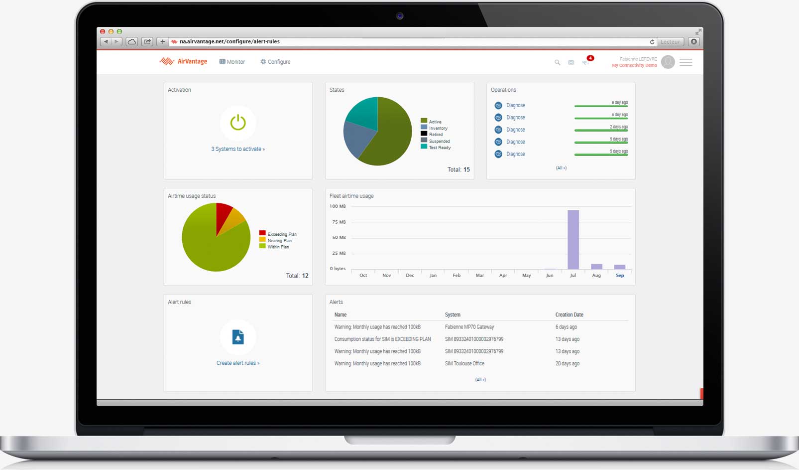 • Operations (commands, …) & updates (system edition on AirVantage) applied on the system