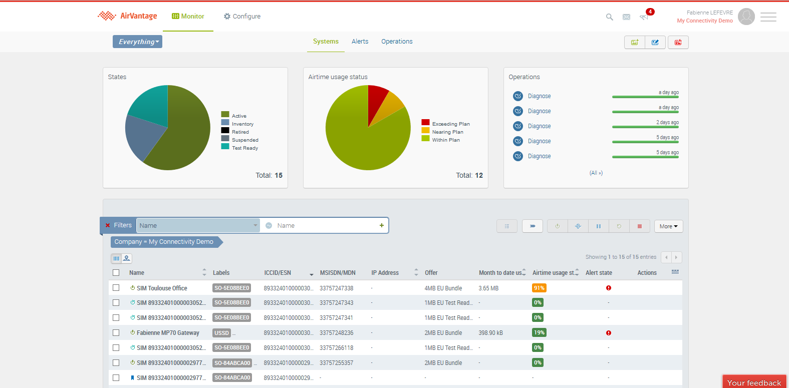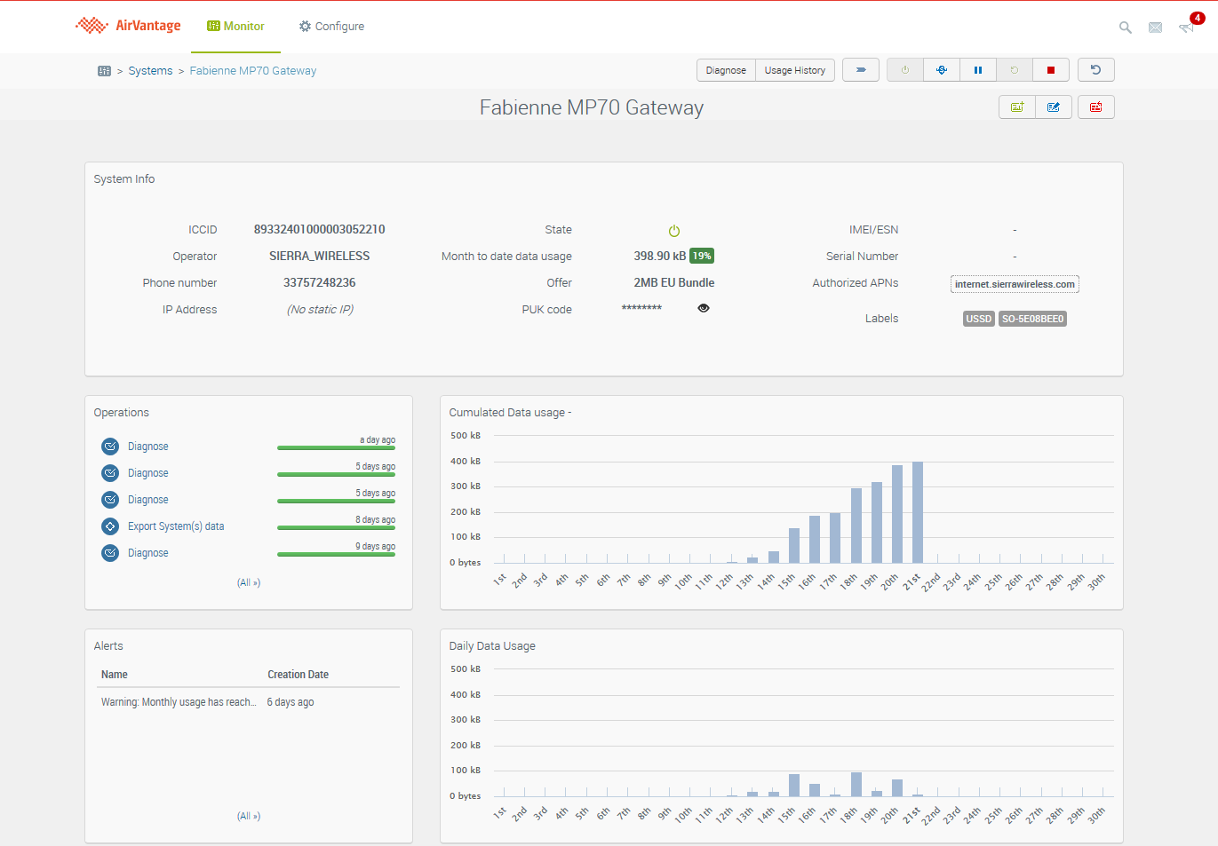 Monitor helps you manage your fleet of SIMs/Systems deployed on the field.